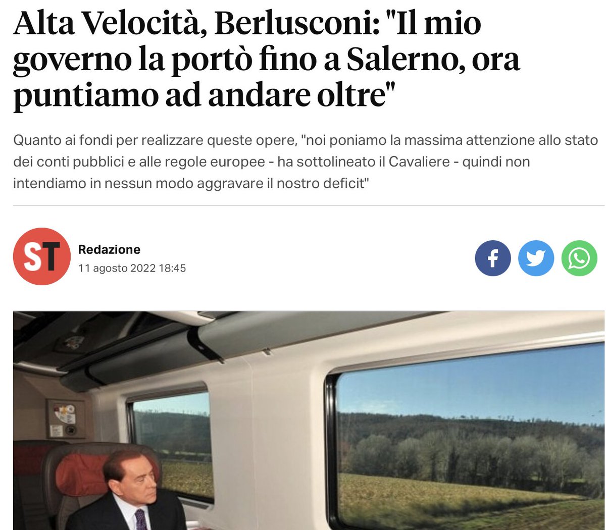 Meno di 7 anni e Silvio sale sul primo treno ad alta velocità che collega le due capitali #trotzkiste: Milano e Bologna. Accanto, #PCI e #MSI - medesimo padrone - gli mettono due dei loro. Ma non c'è niente da fare: il treno va e in pochi anni si rifanno pure le #Stazioni/3