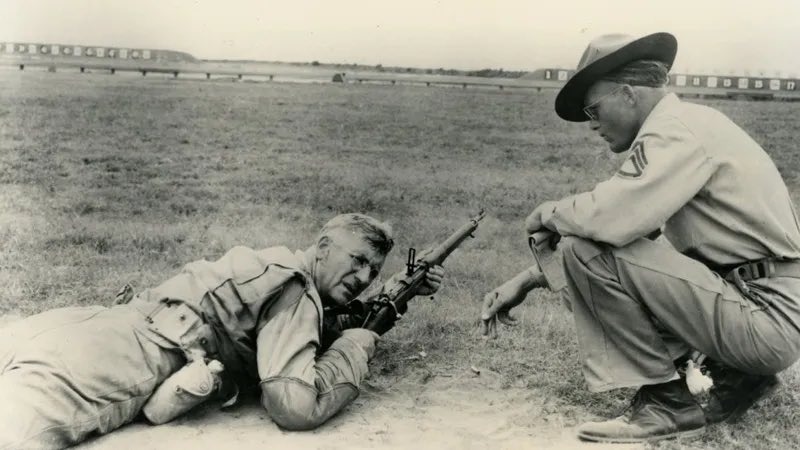 Con un pequeño matiz. Paul Douglas era un refutado economista y profesor de Universidad. Cuando llegó a Parry Island tenía 50 años. Paul no tiró de contactos para evitar el frente, hizo lo contrario. Paul durante su instrucción 👇