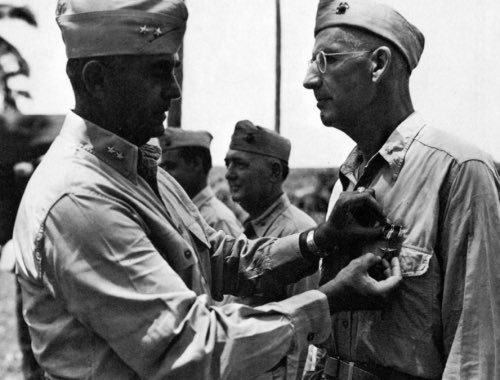 También acabaría con un francotirador japonés que había abatido a dos marines. Aquellos días le ocurrió uno de los hechos que según contaría le acompañó cada día de su vida. Estando en la linea de contacto en Peleliu vio a un joven marine malherido expuesto al fuego enemigo.