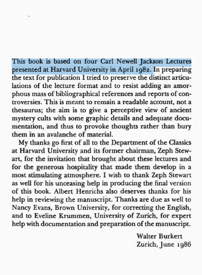 This book by Walter Burkert captures a series of Lectures given by historians at Harvard University in April 1982.