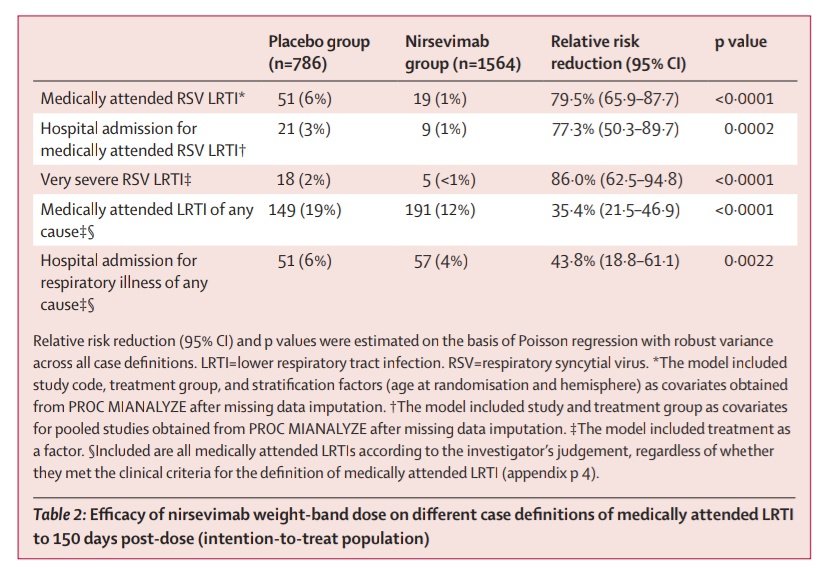 ¿Este fármaco sirve para algo? Según los resultados publicados, parece que sí. Consigue una disminución del casi el 80% del riesgo de ingreso hospitalario por infección VRS y del 86% de enfermedad muy grave (precisar oxígeno o fluidos intravenosos). pubmed.ncbi.nlm.nih.gov/36634694/