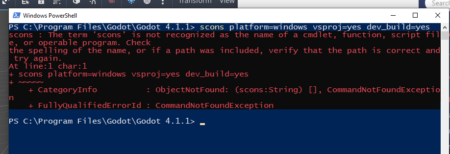 1. docs say "run this in the godot root folder", which gives me an error 2. was this supposed to be the project root? 3. my project root already has an .sln