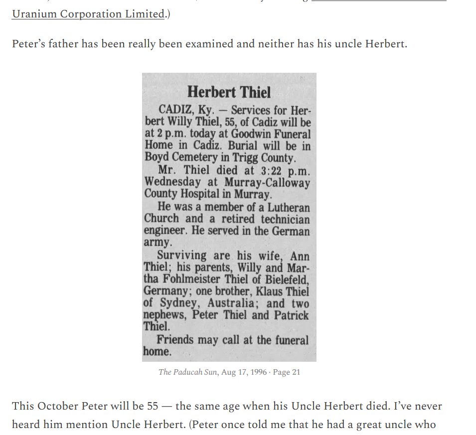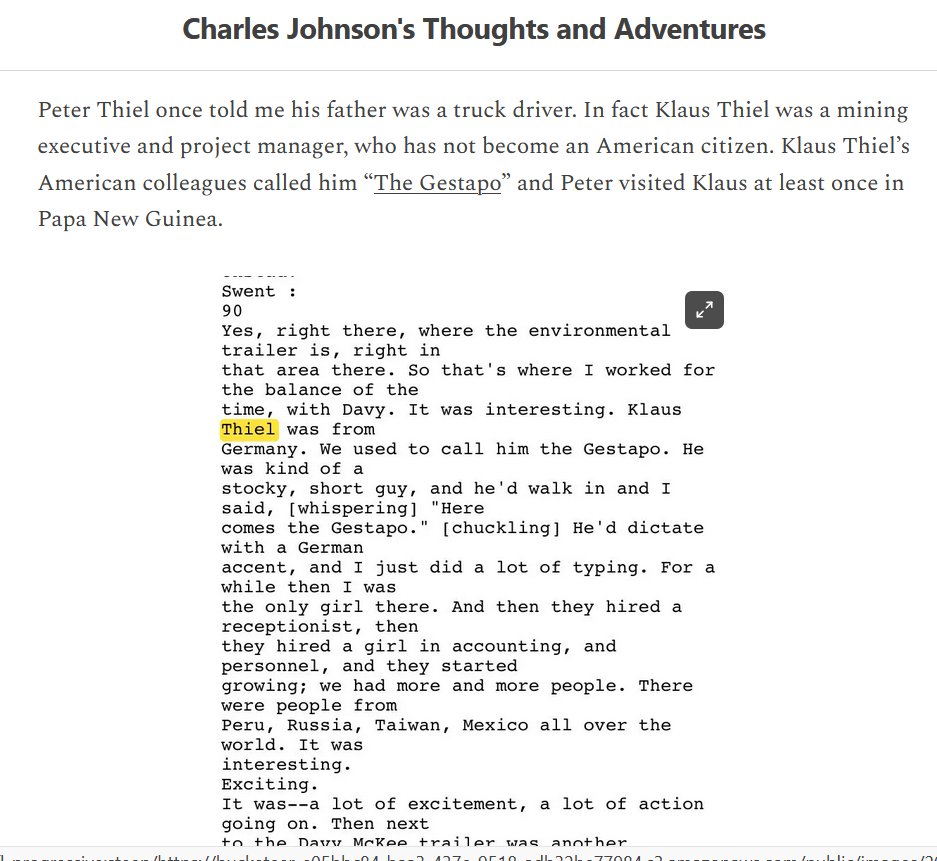 Charles Johnson: "Peter Thiel once told me his father was a truck driver. In fact Klaus Thiel was a mining executive and project manager, who has not become an American citizen. Klaus Thiel’s American colleagues called him “The Gestapo” ..."