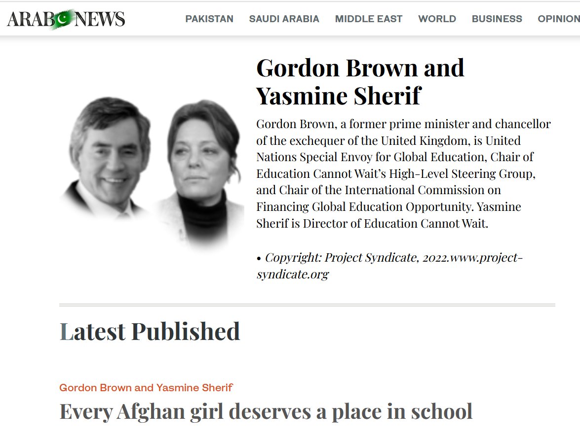 Gordon Brown, a former UK prime minister, is United Nations Special Envoy for Global Education, Chair of Education Cannot Wait’s High-Level Steering Group, & Chair of the International Commission on Financing Global Education Opportunity."