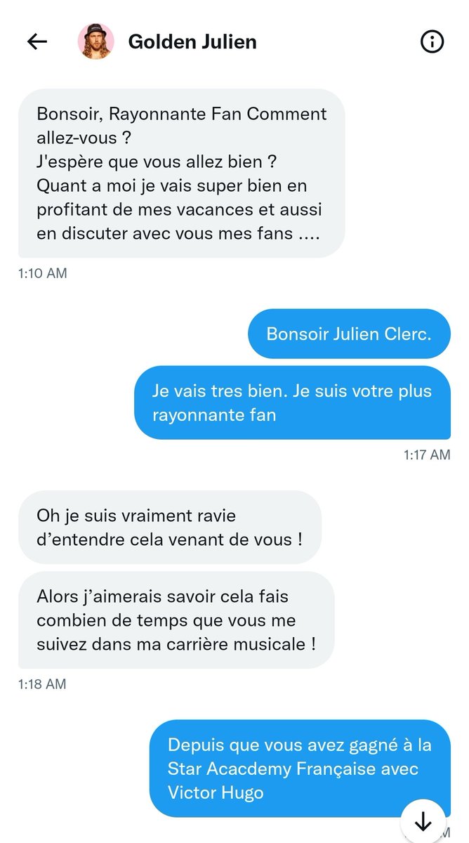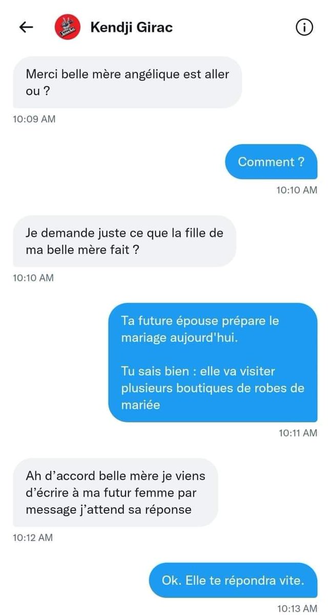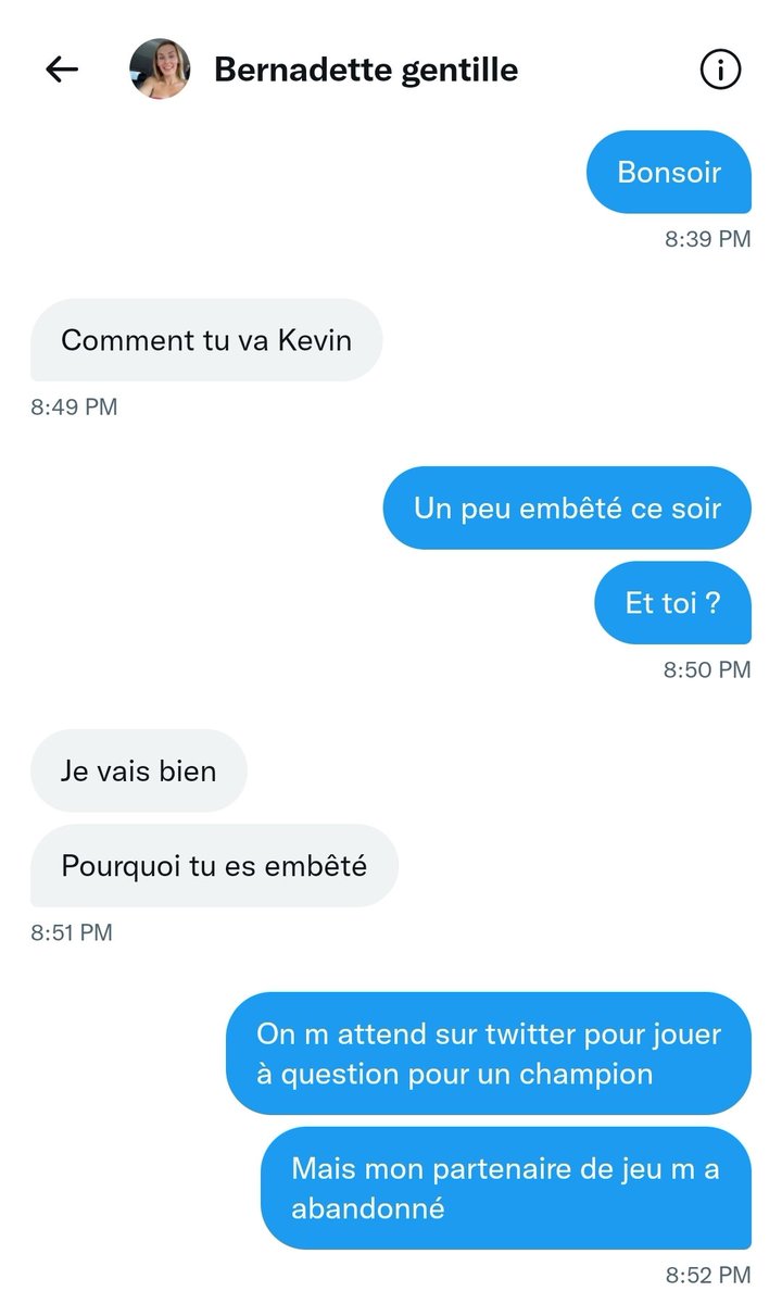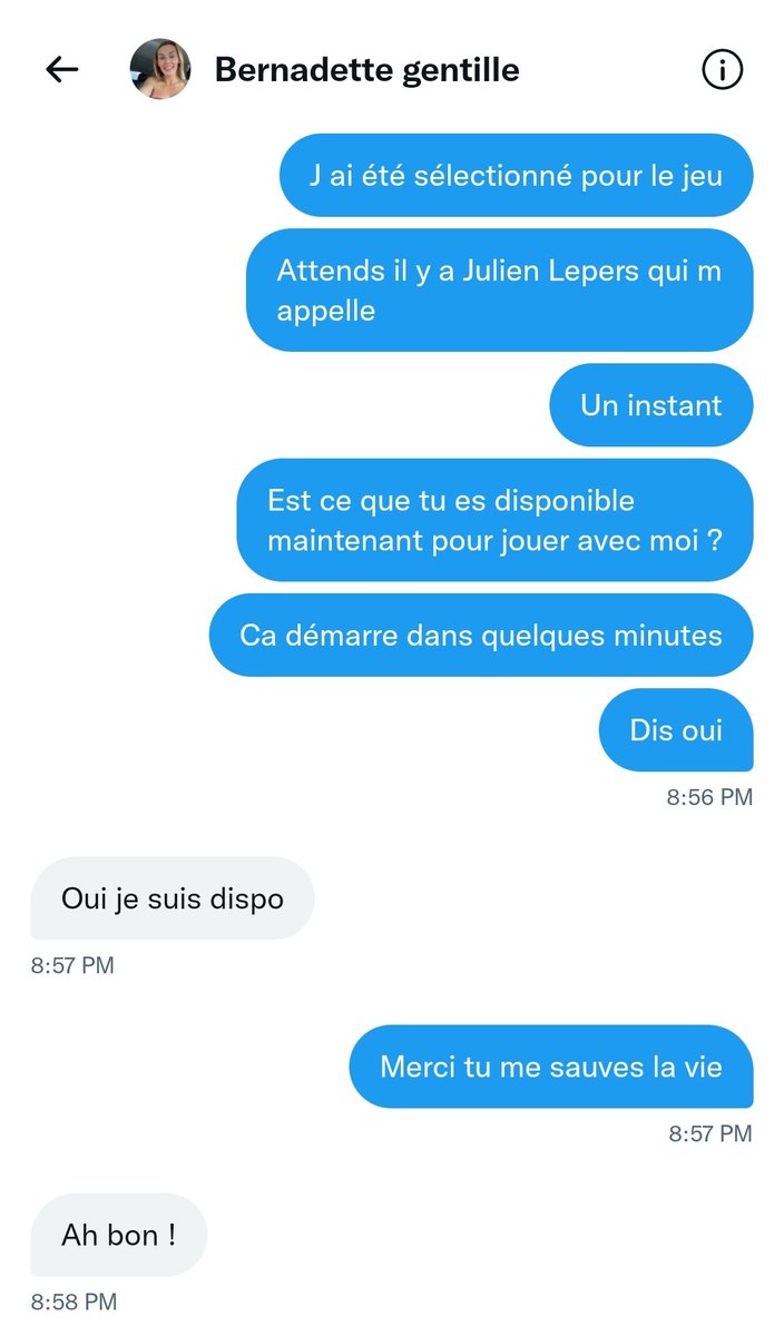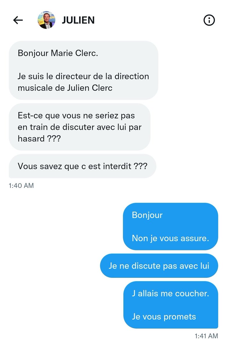 Avec un autre de mes faux comptes (pardon Julien Lepers) je contactais mon personnage Marie-Claire en me faisant passer pour le M. Le directeur artistique lol