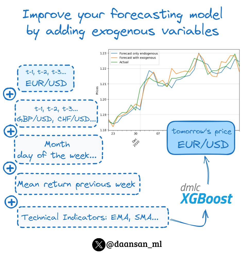0๏ธโฃ As mentioned, we could and should use the previous prices of this currency pair. Of course, we should convert it to Log Returns first (see my article in the last tweet) to make them stationary.