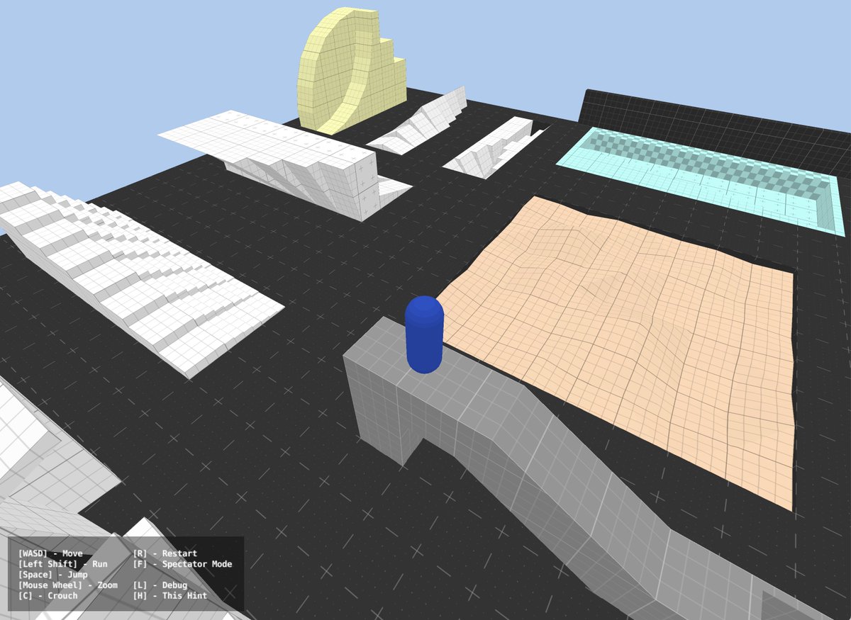 This is a tweakable kinematic character controller suitable for 3D games when you don’t want to use a dynamic body and prefer to have more control over the movement.