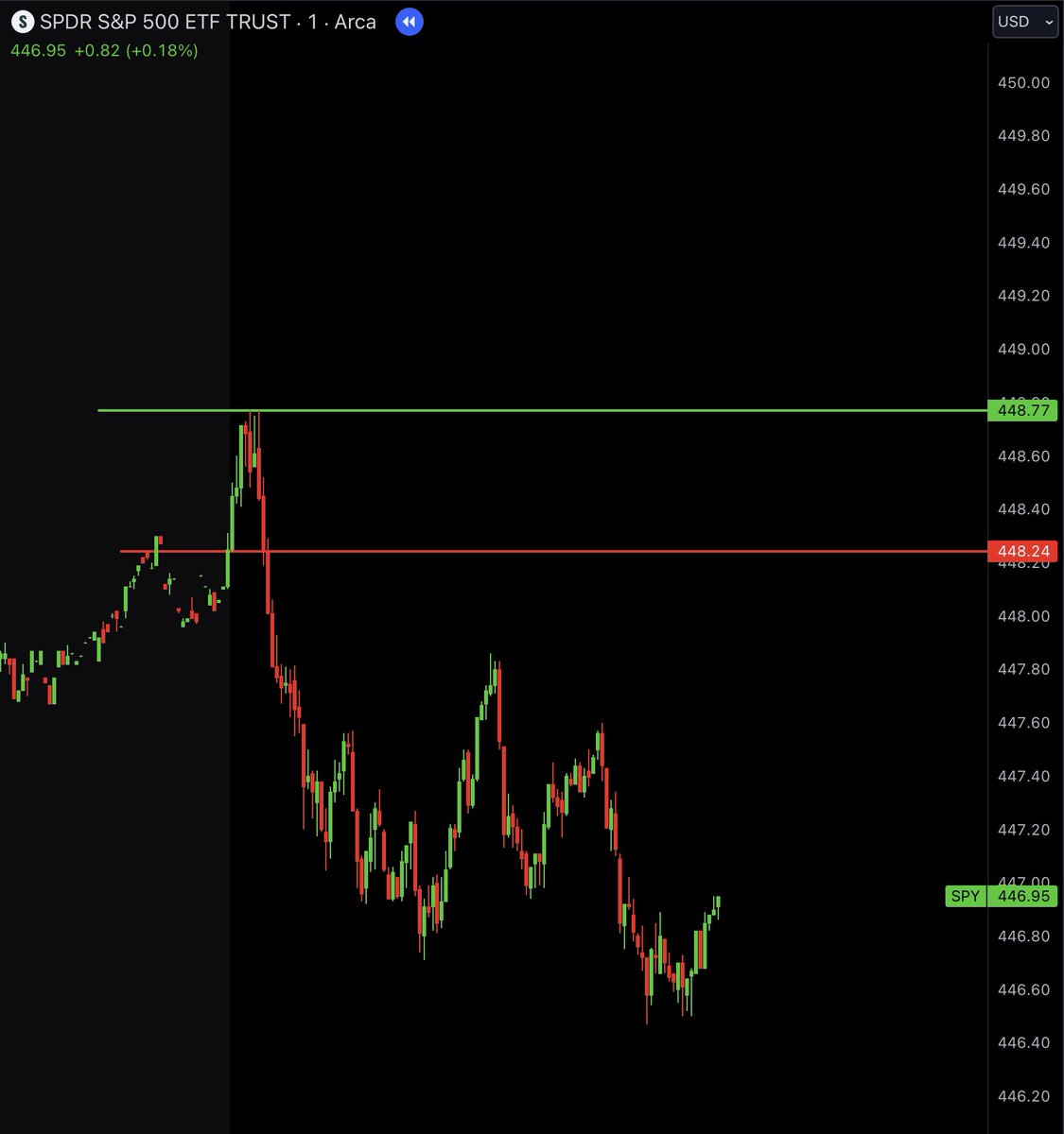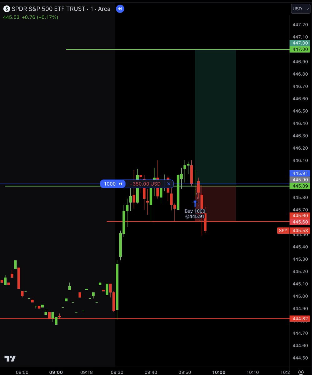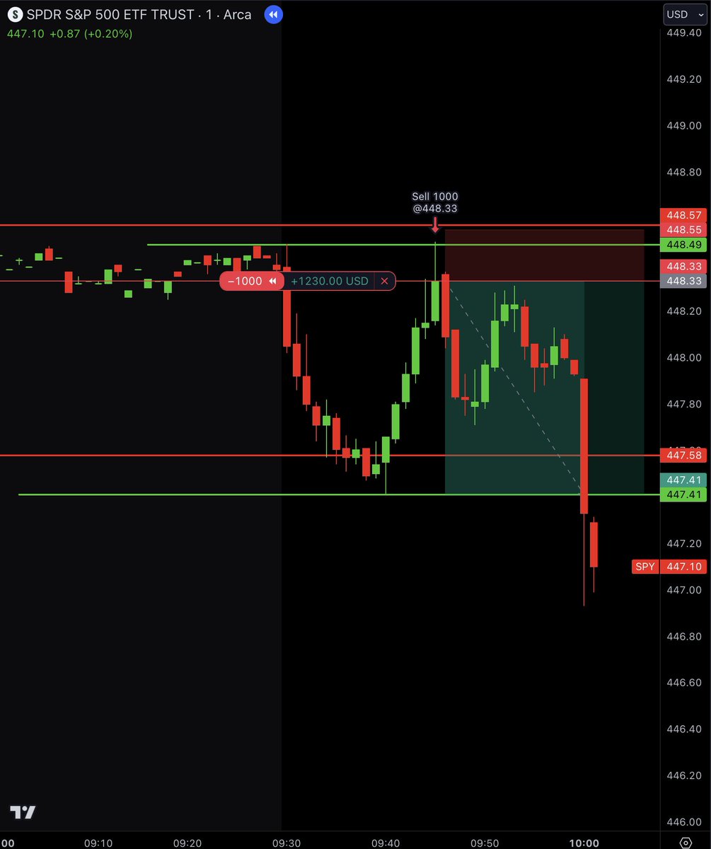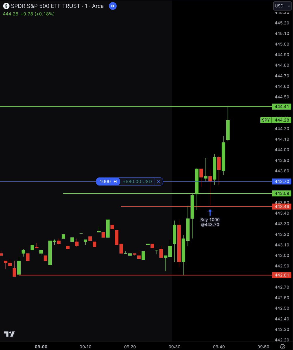 On day 3 we took a long position on $SPY because it retested the 5 min high with a strong candle.