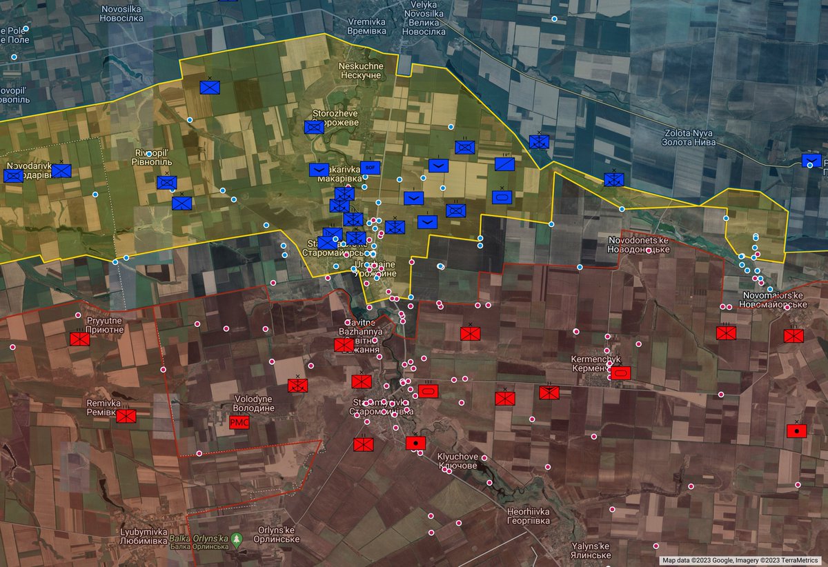 13/25 Russian positions hit by drone bombs south of Robotyne. Likely a few weeks old
