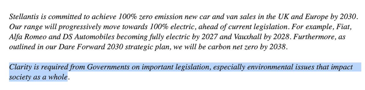 Just read at the statements from Ford & Stellantis. They feel they're being messed around. And this is the public stuff. In private they're far FAR more scathing. Why invest in a country which doesn't seem to know what its strategy is?