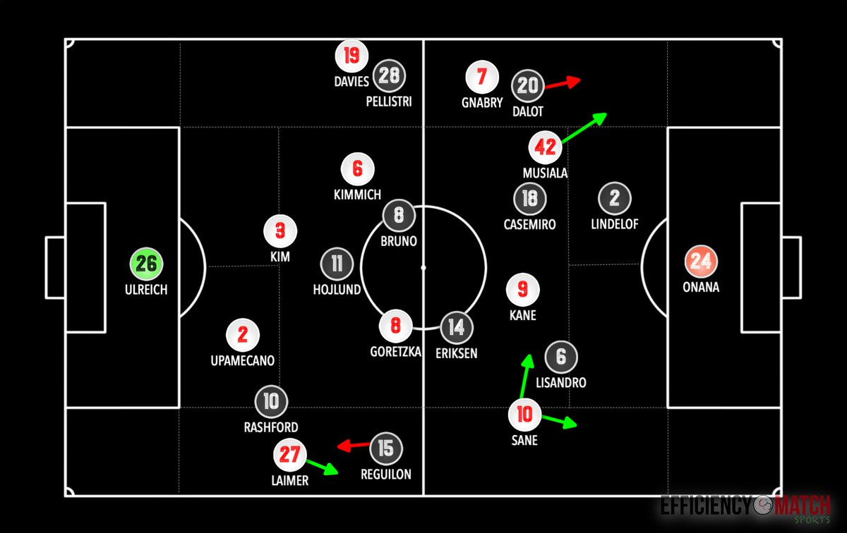 Then came the first goal. Rashford with some pitiful defending against Sane, allowing him to cut in and then Eriksen comes in as cover but makes a feeble challenge and then to put the icing on the cake... a horror handling show by Onana. 1-0 Bayern and a smash and grab goal.