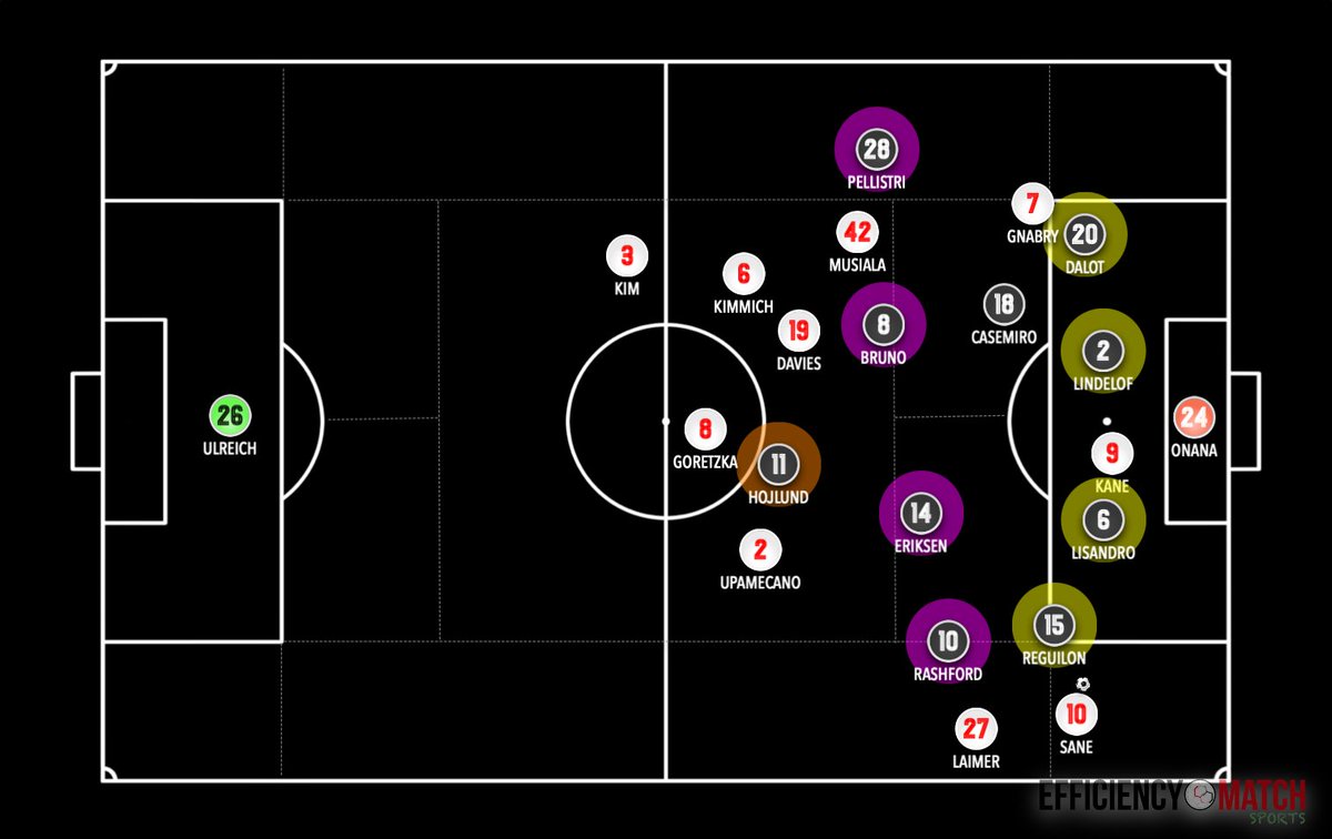 United looked deflated and Bayern finally established true control of the game, until the very end of the game when the legend that is Casemiro remembers he's a champion of the highest order, salvages pride and scores to make it 3-2 - bulldozing through Bayern's very deep block.