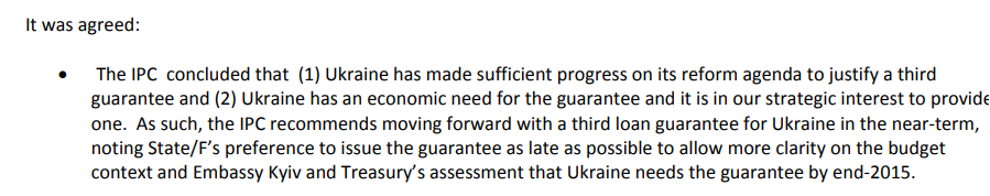 we KNOW that there was an interagency meeting on Sept 30, 2015 at which the interagency agreed that "Ukraine has made sufficient progress on its reform agenda to justify a third guarantee" and the minutes (to vast list) made no mention of Shokin firing justthenews.com/sites/default/…