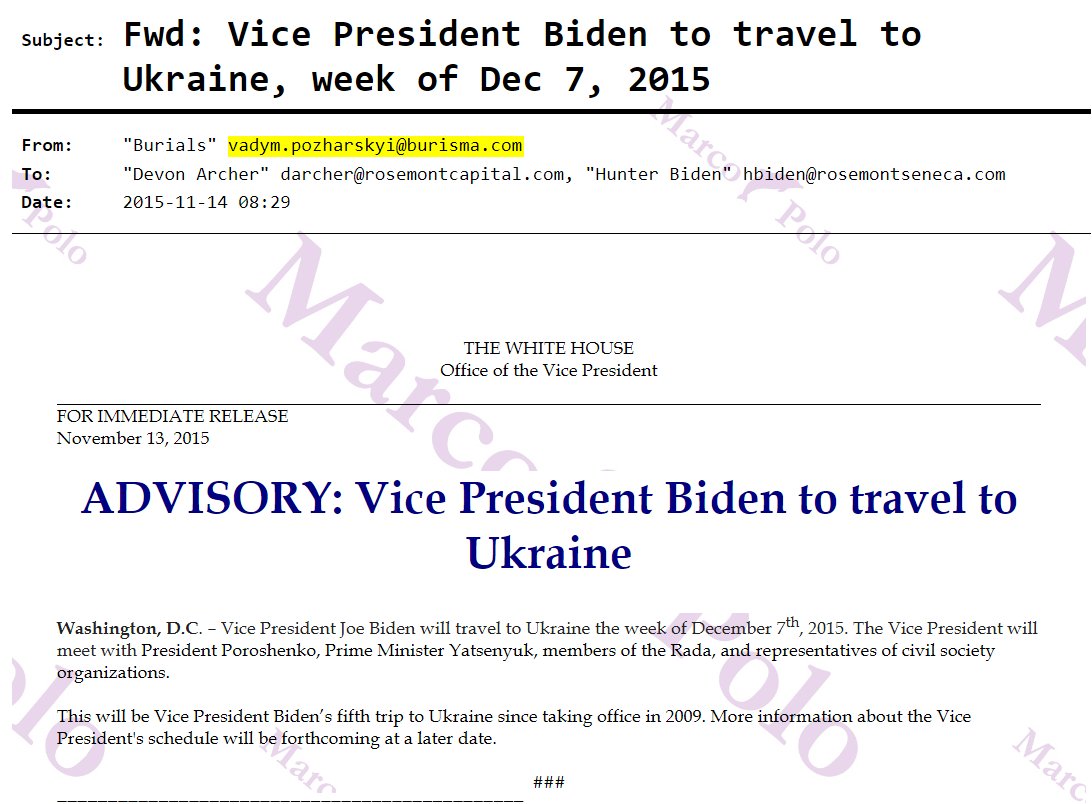 On Nov 13, Joe Biden announced a trip to Ukraine. Pozharskyi emailed Hunter immediately. One of his key deliverables was a "visit of a number of widely recognized and influential current and/or former US policy-makers to Ukraine in Nov". Had Hunter delivered? Beyond expectation?