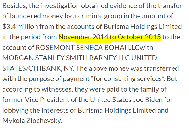 here's Kulyk and Derkach's explanation for the sudden concern by Burisma and Biden. They stated in May 2020 that the Kurchenko money laundering investigation had discovered $3.4 million payment of "laundered money" to Rosemont Seneca Bohai