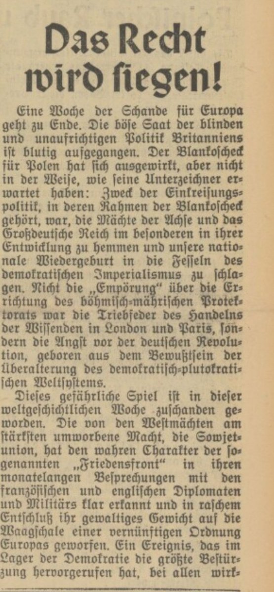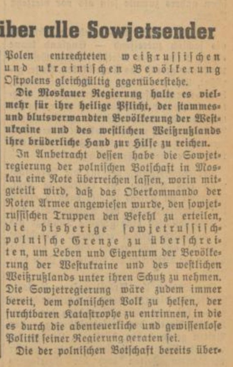 In seiner Ansprache erklärte Molotow, dass die Sowjetunion ihre "blutsverwandten Völker" der #Ukraine und #Belarus schützen wolle. Moskau sei ebenfalls bereit "dem polnischen Volk zu helfen, der furchtbarsten Katastrophe zu entrinnen, in die sie durch abenteuerliche u./2