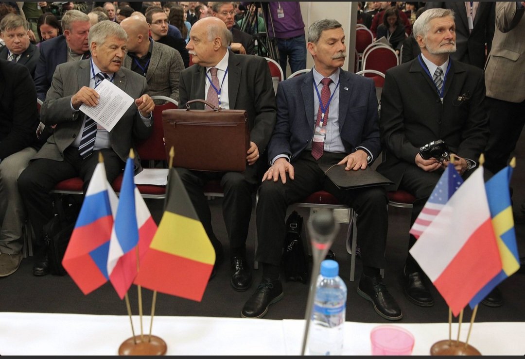 Eingeladen hatte die rechtsextreme russische "Rodina" Partei, die vom Neonazi Dmitry Rogozin begründet wurde - dieser zeigte bereits in den 90ern gerne den Hitlergruß und schwadronierte später vom "jüdischen Faschismus". Putin beförderte ihn 2018 zum Chef der Weltraumbehörde/2