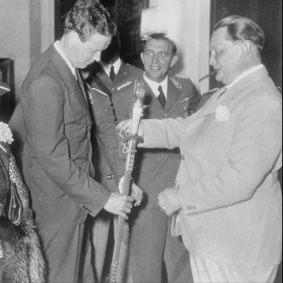 Die Demonstranten rufen "Friede! Friede! Friede!" - tatsächlich steckt dahinter aber eine rechtsextreme Lobbygruppe. Ihr Kopf ist kein geringerer als der Luftfahrtpionier Charles Lindbergh, der schon seit den 1930ern enge Kontakte zu den Nazis pflegt (1936 traf er z.B. Göring)/2