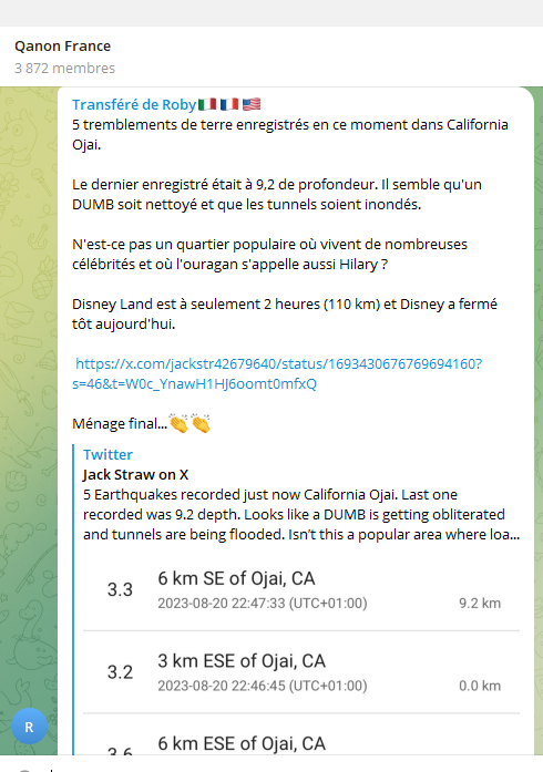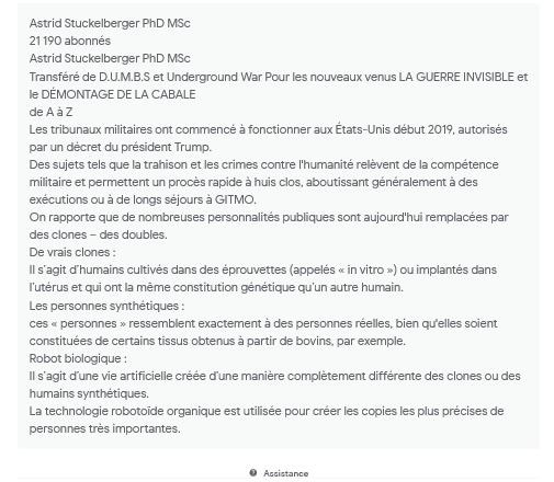 7/n : Ne riez pas, ces comptes sont très suivis dans le monde francophone… Et on peut compter sur certains de nos comploplos préférés pour diffuser leurs délires. Najadi s’y est aussi mis avec le siège de la CIA…