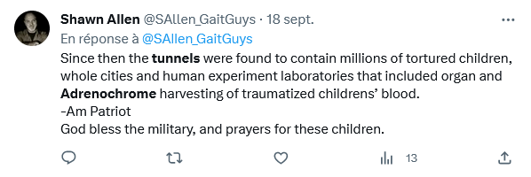 6/n :Habituellement, les DUMB’s, ce sont donc des histoires de tunnels secrets dans lesquels on élève des enfants en vue de prélever leur adrénochrome, source de jeunesse éternelle pour les élites pédosatanistes.