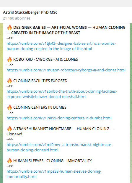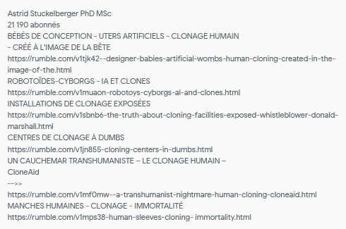 10/n : Bébés fabriqués à l’image de la Bête…, exploitation de l’adrénochrome (évidemment…), Y a plein de vidéos pour vous le prouver le « Cauchemar transhumaniste » sur Rumble, Crowdbunker et toutes ces plateformes plus pourries les unes que les autres…