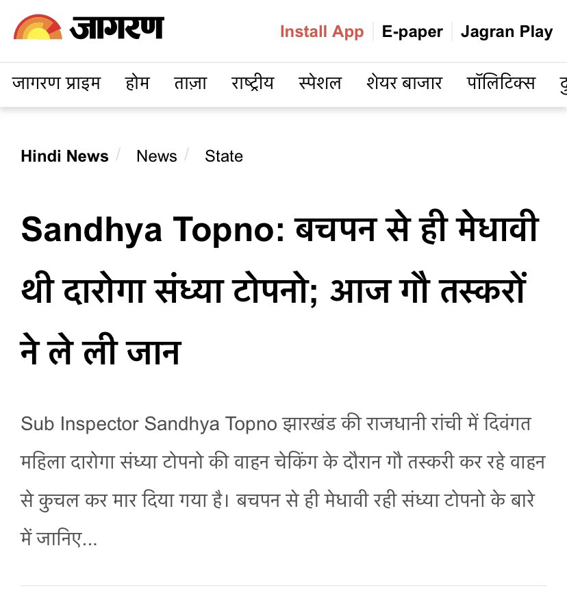 2. Jharkhand Police SI Sandhya Topno was mowed down to death by cattle smugglers.