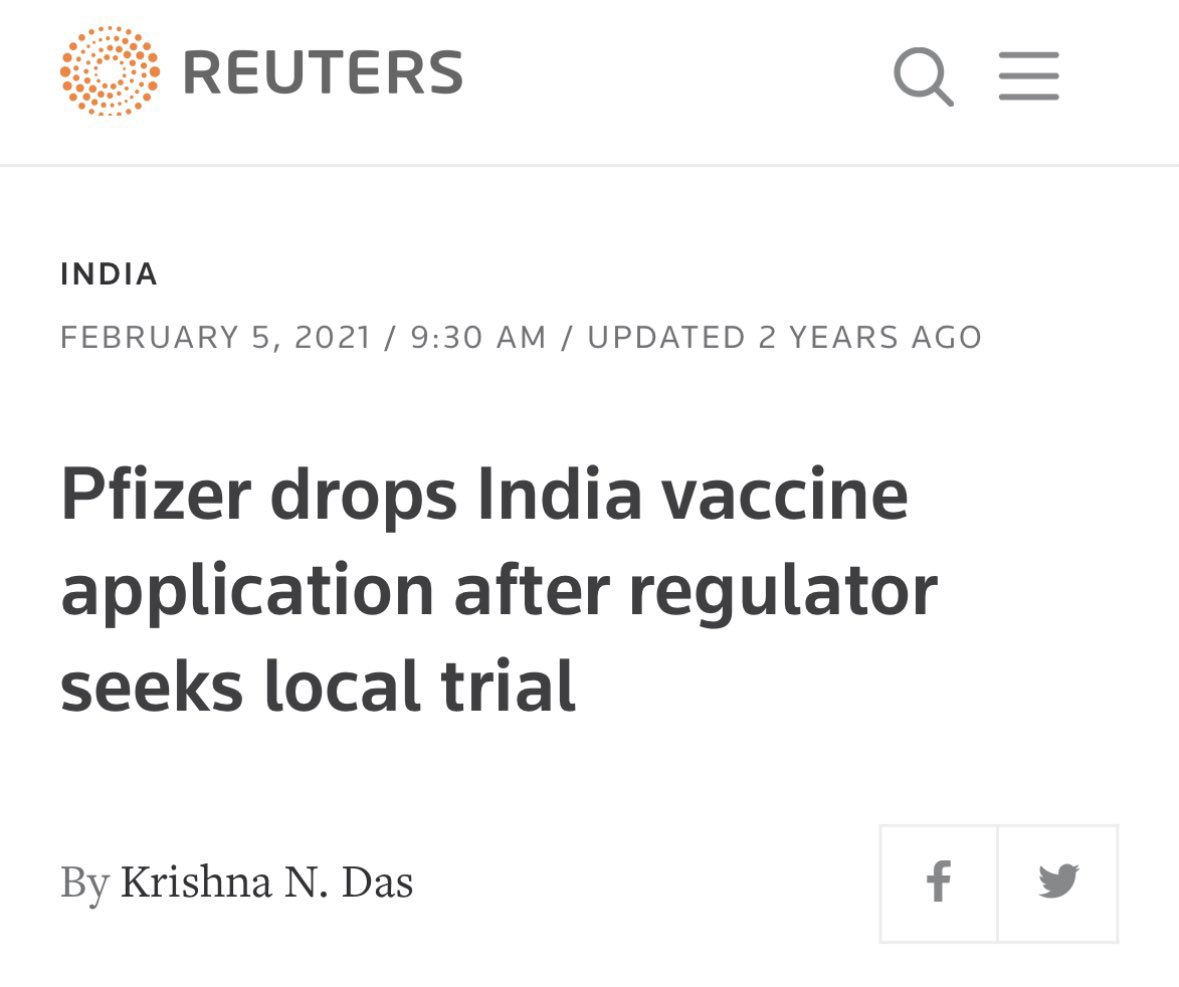 In this thread, we will show how they started pressuring Indian govt to take Pfizer vaccine and attacked Indian vaccines. Also we will talk about side effects of Pfizer vaccines and what they hid from us.