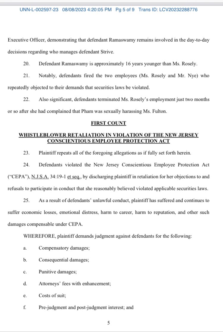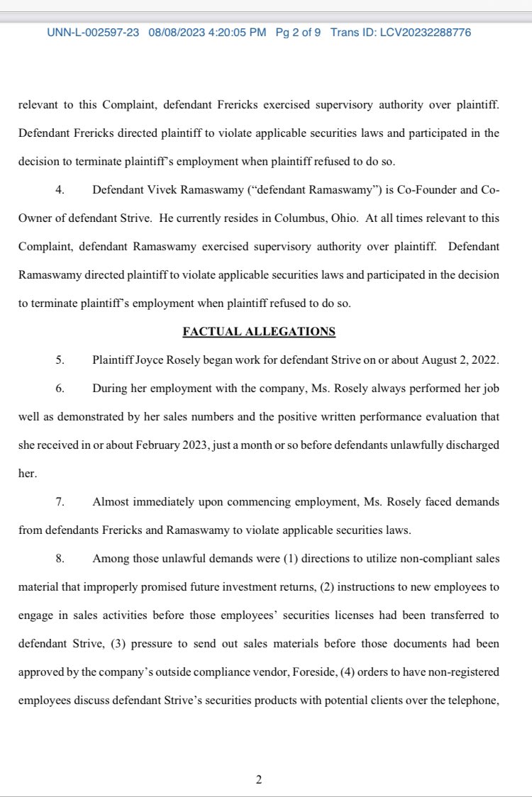 Any up for reading the complaint in a pending lawsuit against Vivek Ramaswamy? A former employee is accusing him of some pretty bad financial improprieties. He hasn’t publicly responded yet. We’ll see what develops.