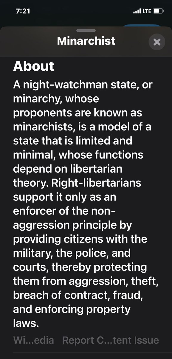In a minarchist society, govt does NOT offer aid or regulations to protect the public. The public is on its own & responsible to look after themselves.