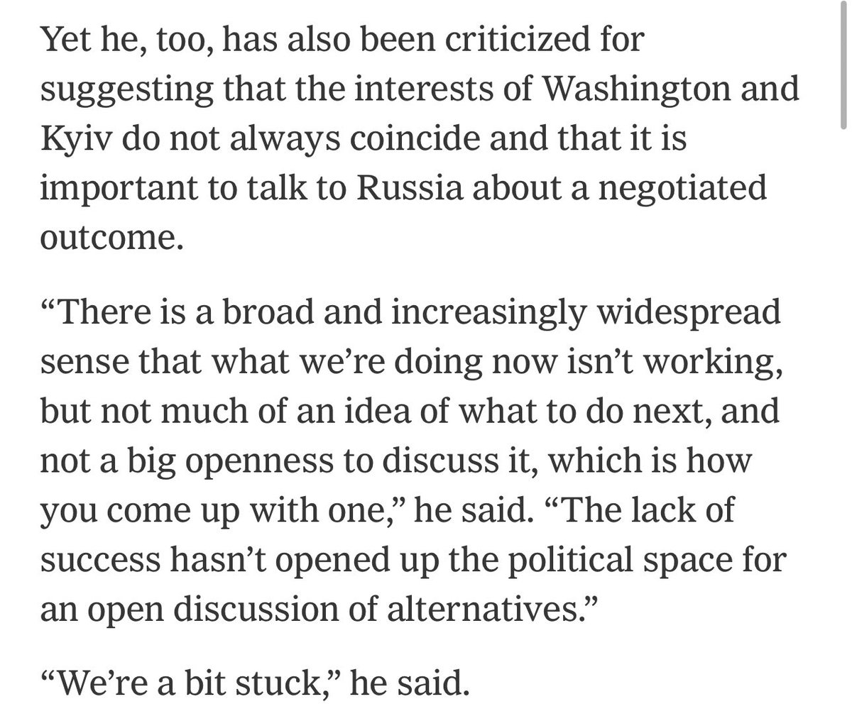 The appeasement genre has spawned its own meta-pieces reflecting on the “hostile” forces against the noble warriors of the peace table. On cue, here is the @nytimes subtly or not so subtly giving the stage to the same cast of characters lamenting this. nytimes.com/2023/09/01/wor…