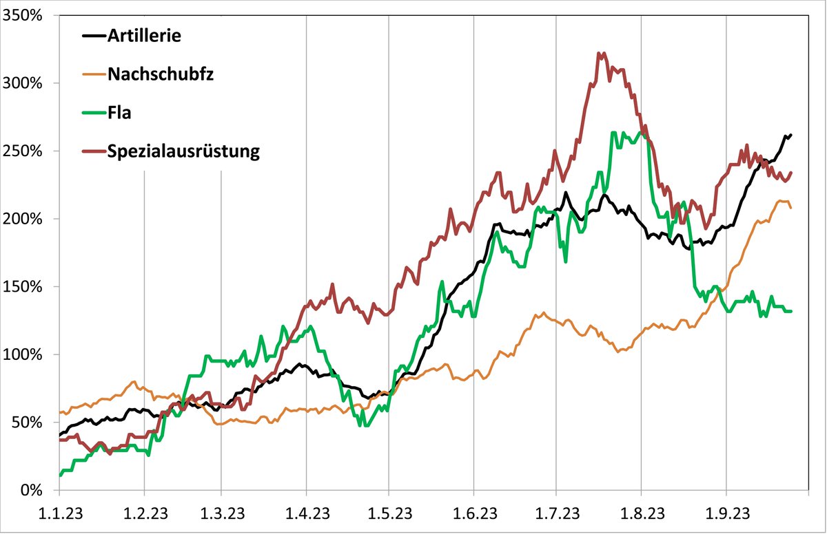 Ergänzend sei noch angemerkt, dass sich die Anzeichen für einen bevorstehenden Engpass auch bei den Kampfpanzern mehren, von dort also keine Entlastung zu erwarten ist. Das wird allerdings Thema eines weiteren 🧵sein
