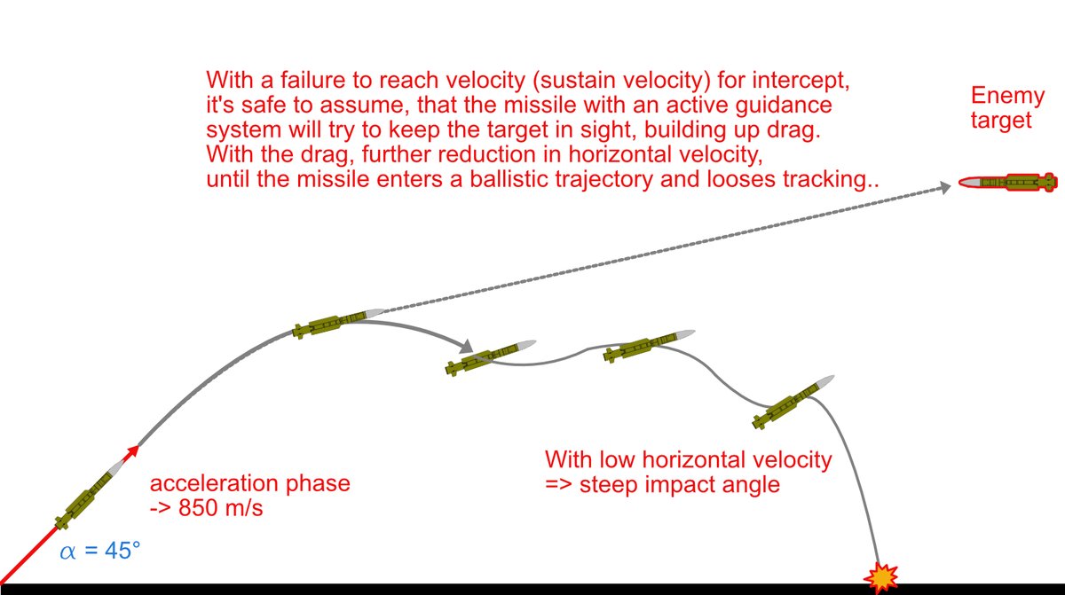 You easily get a sense of how oddly specific this engine-failure is supposed to happen to support this. So the chance of that type of missile, burning at least through its first section, getting to 850m/s and then suddenly going ballistic, either overshoots or ends supersonic.