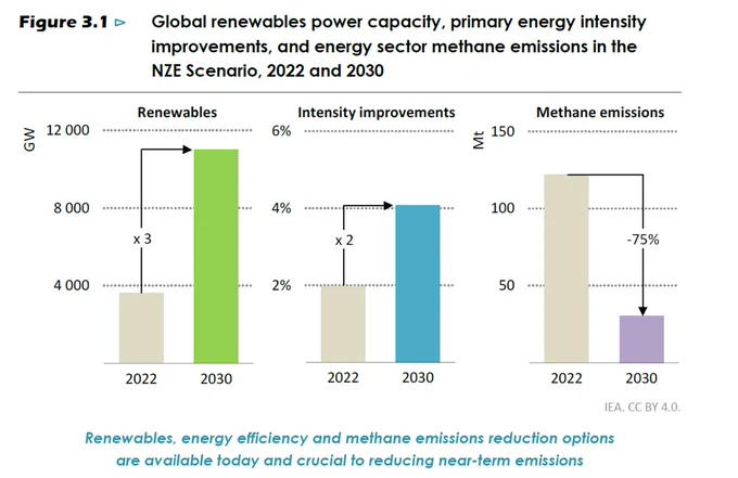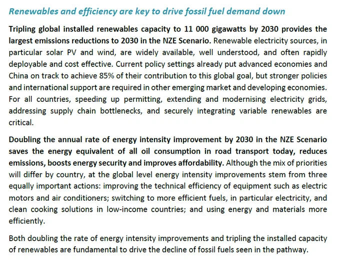 The IEA want you to remember only two solutions: tripling renewables and doubling energy efficiency.