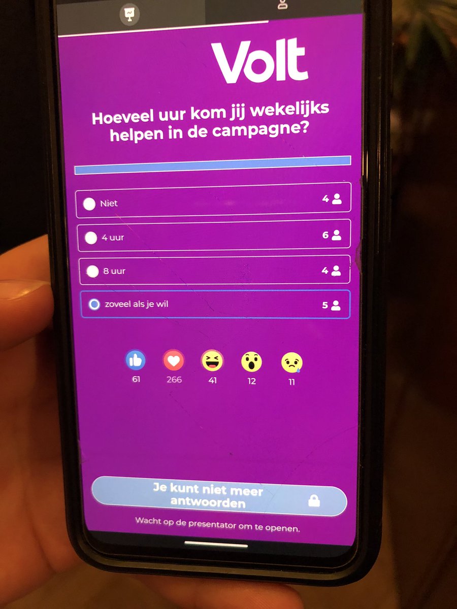Daarmee komt een einde aan deze Volt-avond. Het mag allemaal niet te lang duren maar ik vind het geen probleem. Een fijne avond. #Eind