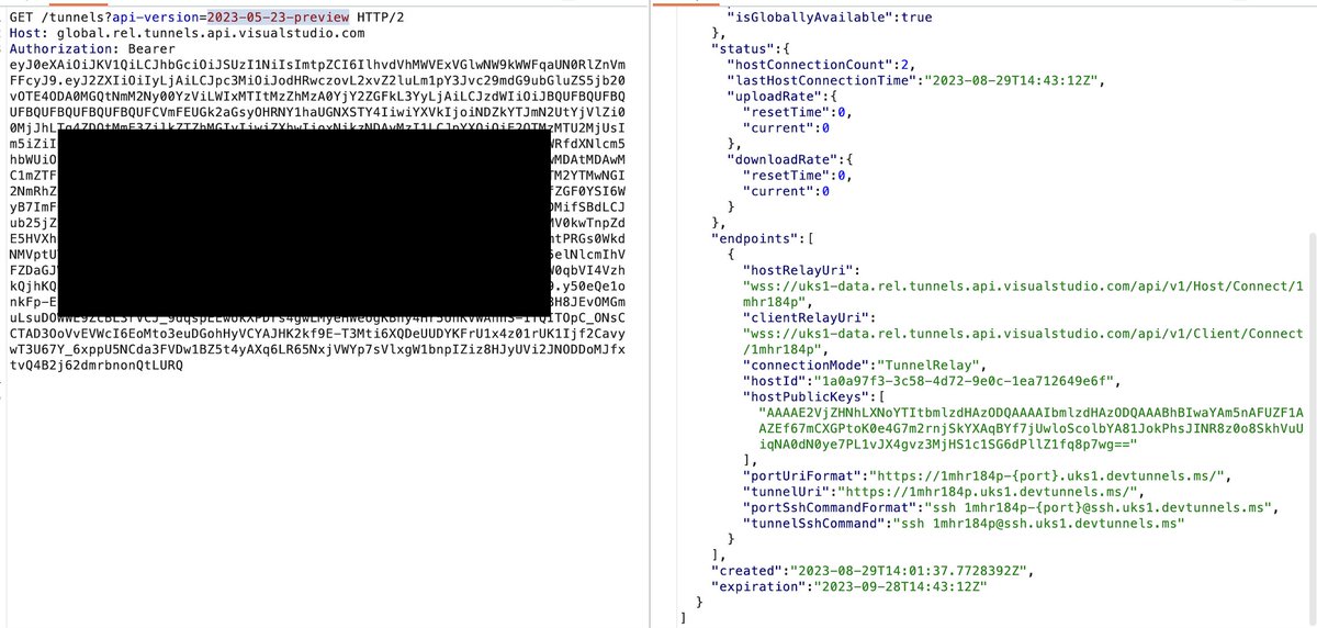 the url looked like this global.rel.tunnels.api.visualstudio[.]com/auth/postback?pb=url&scheme=aad where url is your private devtunnel url, the issue was your token can be sent to any devtunnel url, basically an open redirect to anything.uks1.devtunnels[.]ms 2/n