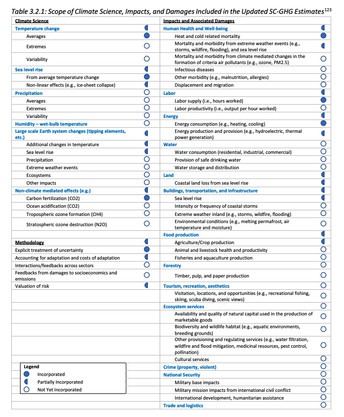 Per the table, from USEPA, estimates of climate damages tend to simply ignore many major known sources of, er, climate damage, including temp/rain extremes, several potential tipping points etc etc etc