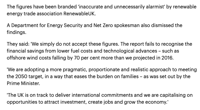 The Mail did at least publish a response from govt saying “We simply do not accept these figures. The report fails to recognise the financial savings from lower fuel costs and technological advances – such as offshore wind costs falling by 70% more than we projected in 2016.”