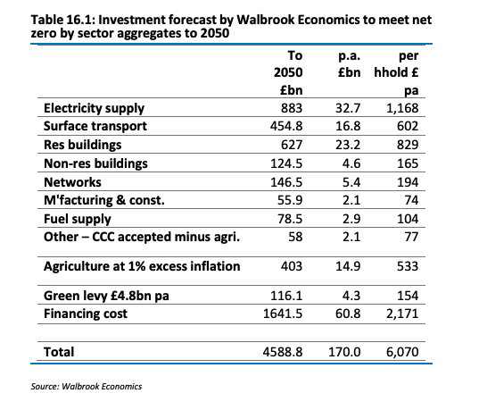 The report includes an estimated cost to decarbonise the electricity system and then adds current subsidies for decarbonising the electricity system on top ("green levy"), assuming they continue at the same level forever (most are 15yr contracts)