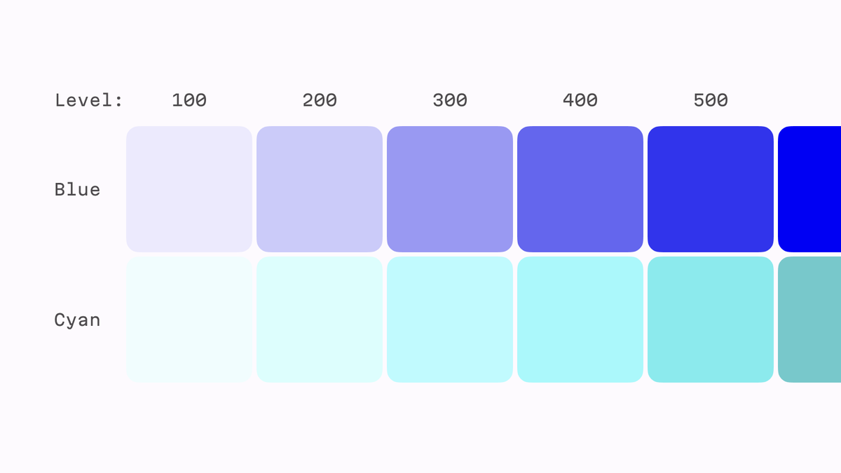 The problem arises when you expect that text set in Blue 600 will be equally readable as text set in Cyan 600 because they both have a lightness level of 600.