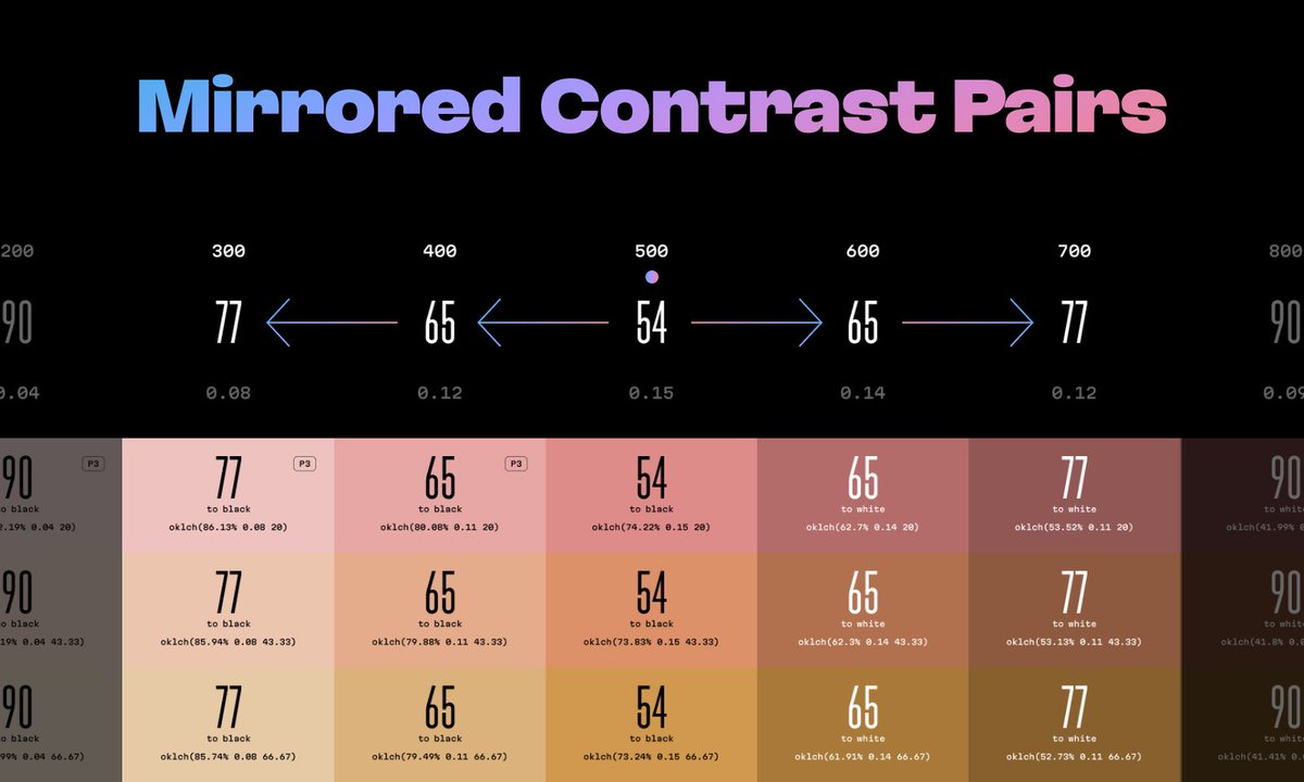 I’m sure you’ve already grasped this: using colors from mirrored columns not only simplifies the process of creating semantic token aliases for UI themes but also ensures identical color contrast for text and buttons.