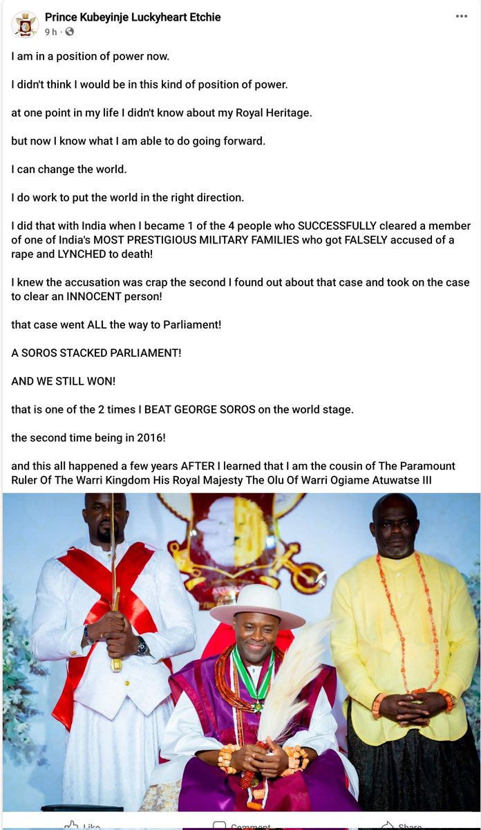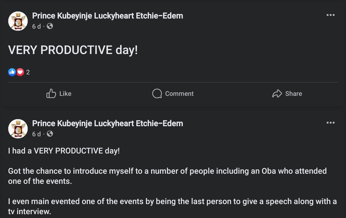 @ROYALMRBADNEWS These are the FB page screenshots from the account 'Prince Kubeyinje Luckyheart Etchie' he also.posted on X a post regarding an TRDJ operative being on the African Leadership Zoom Group (both Videos above). You can clearly hear that it is the same person.