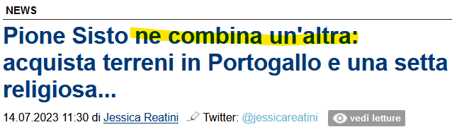 La fonte è la rivista lusitana Visao, che racconta gli strani legami tra Sisto e la setta denominata Regno di Pineal, fondata da un santone complottista e paranoico originario dello Zimbabwe e che vuole l'indipendenza dal Portogallo.