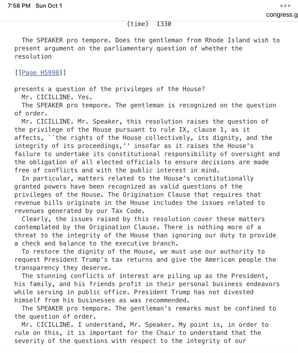 When consideration does occur, the Chair first determines if the resolution constitutes a question of privilege. The Chair might entertain debate over this, but will eventually make a ruling. The ruling can be appealed. 5/