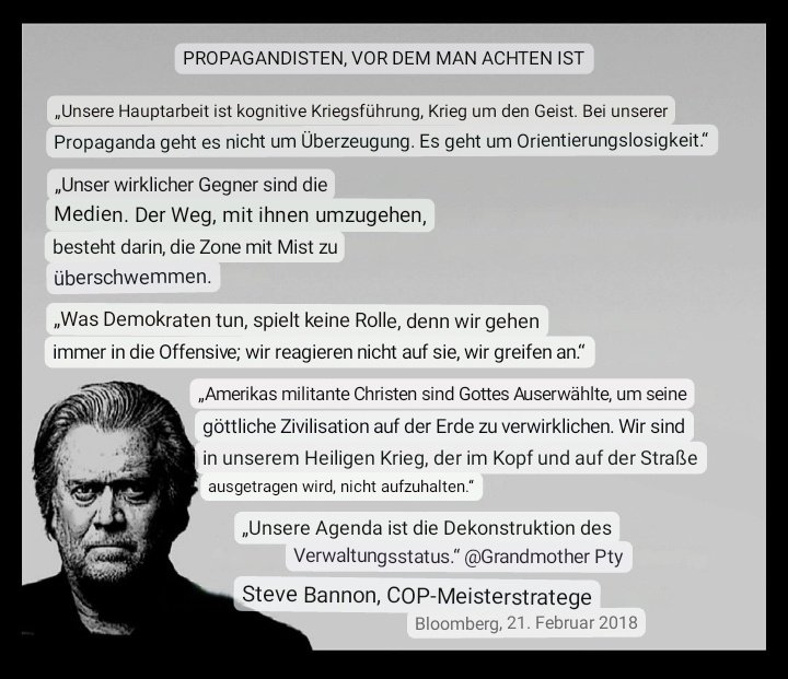 18|Doch kommen wir nochmal auf Trump und die USA zurück. Denn hier gibt es noch jemanden der für Russland daran arbeitet die Wahrheit im Westen auf eine andere Weise zu zerstören. Sein Name ist Steve Bannon, er hat Kontakt zu Dugin und seine Strategie heißt Populismus!