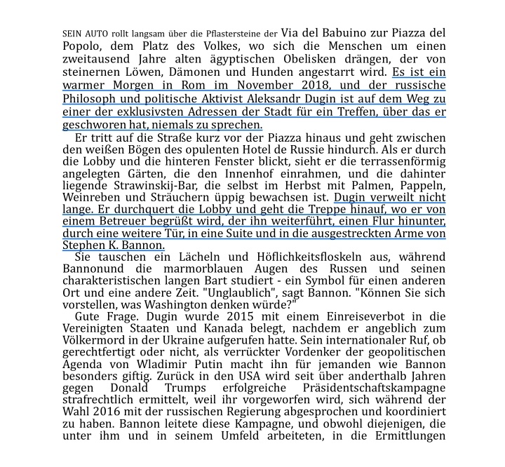 19|Steve Bannon hat es sich zu Aufgabe gemacht, alle rechtskonservativen Kräfte in Europa zu Vereinen um diesen an die Macht zu verhelfen. Dafür nutzt er Ein Kloster in Italien mit Nähe zum Vatikan, aber tourt auch bei der Weltwoche, trift auch mit AfD und FPÖ