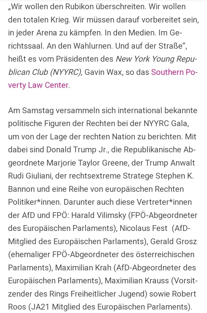 22|Auch im letzten Jahr traf sich die populistische Front um Steve Bannon, die ganz Europa stürzen soll, in Manhatten. Und so war dann auch der Ton dort. Man sprach von Krieg gegen die Medien, Istitutionen und auf der Straße. belltower.news/netzwerke-afd-…