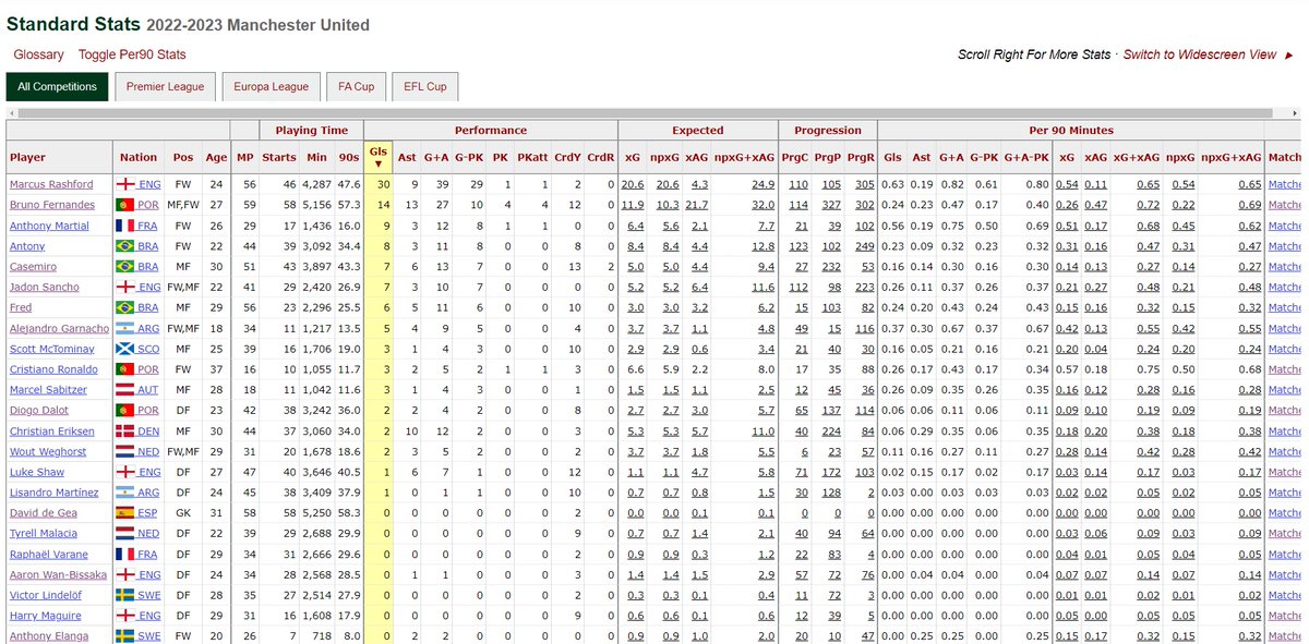 In summary of the above data, we were largely ~6th for a lot of passing, final 3rd entry & creation metrics, but the reason we came 3rd in the league was due to over-performance & over-reliance on Bruno & Rashford to bail us out in the few times that we did enter the final 3rd.