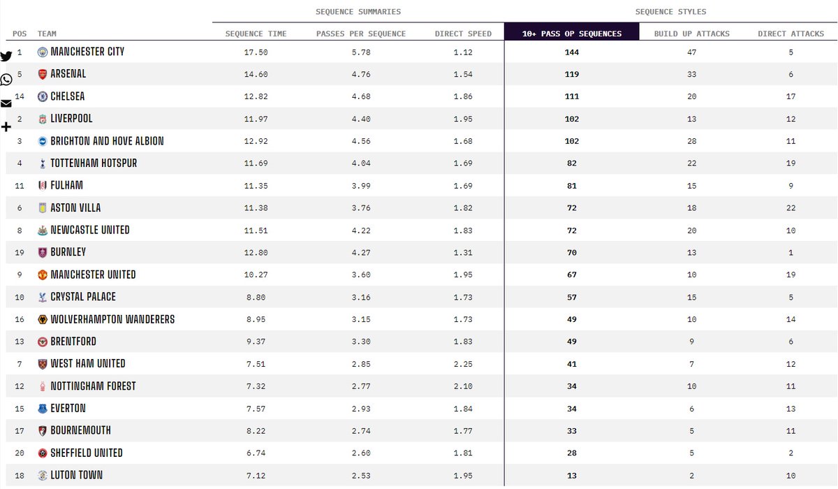 Data confirms. Currently, we're 11th for 10+ pass sequences, 12th for build up attacks & 2nd for direct attacks.