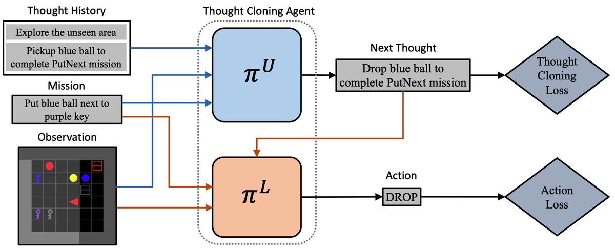 We already know language models can perform human-level reasoning in narrow domains. Thought Cloning offers a path to grounding this reasoning in the physical world of action. The compositional structure of language would allow agents to efficiently explore massive spaces of strategies and mental models to solve problems.