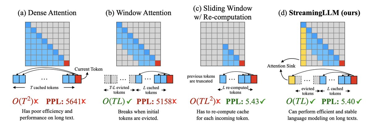 - Much more efficient than alternatives like sliding window with recomputation. StreamingLLM provides up to 22x speedup per token decoding.